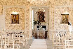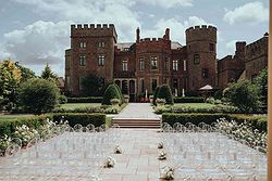 A fairytale 17th-century castle surrounded by tranquil gardens and countryside, creating a magical wedding backdrop.